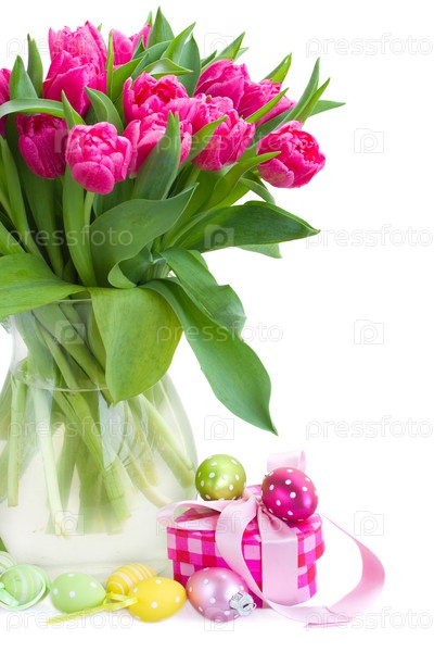 Розовые тюльпаны и подарок