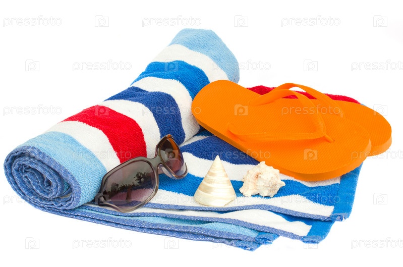 Полосатое полотенце и сандалии