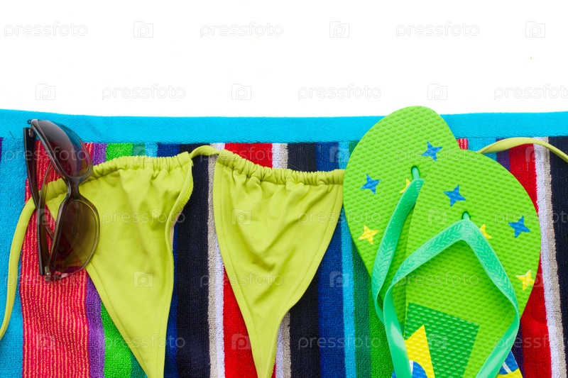 Сандалии и купальник на полотенце