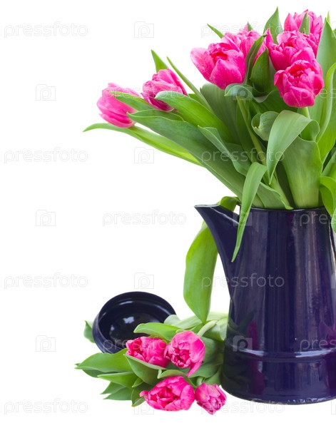 Букет розовых тюльпанов в чайнике