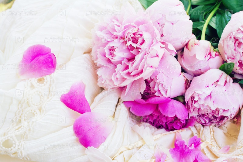 Свадебное платье и розовые пионы