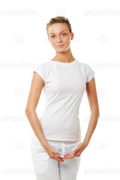 Молодая балерина в тренировочной одежде изолирована на белом фоне