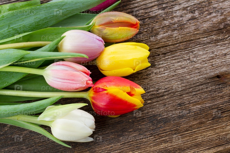 Букет разноцветных тюльпанов