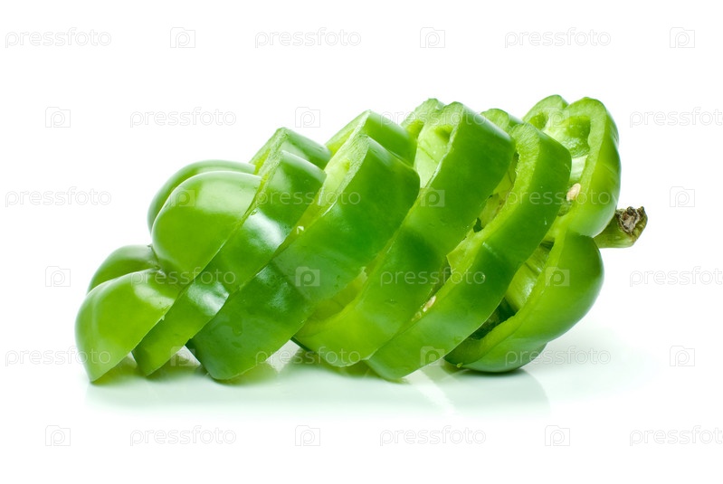 Нарезанный кольцами зеленый сладкий перец на белом фоне