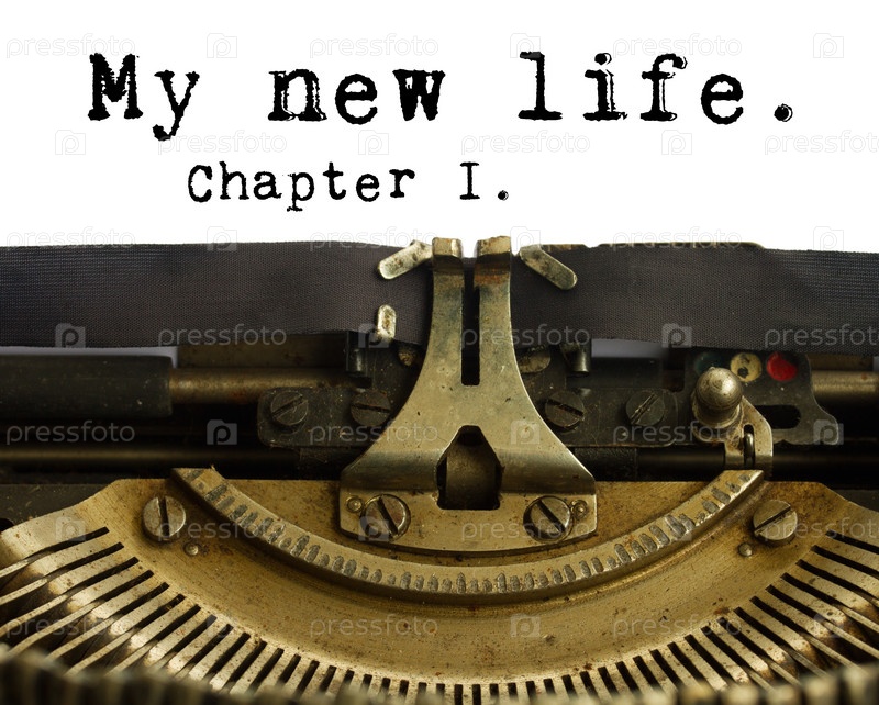 Пишущая машинка и надпись "Моя новая жизнь"