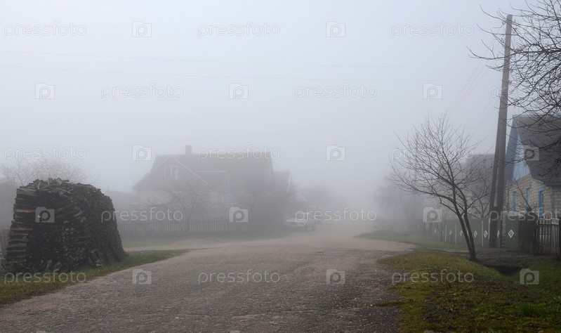 Сельские дома в тумане
