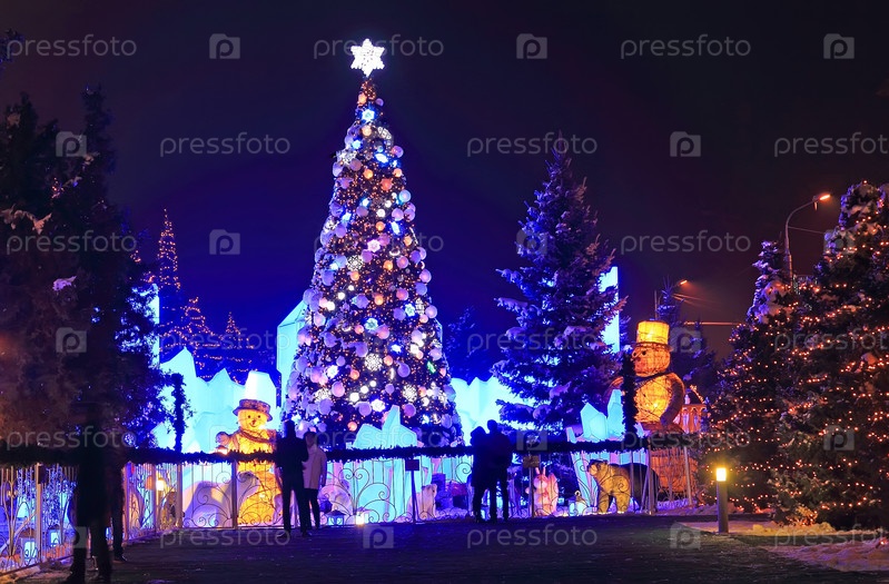 Ночная новогодняя елка на открытой площадке