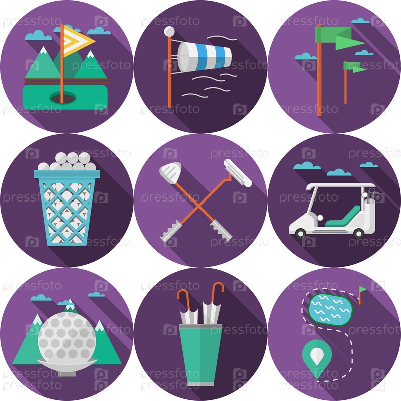 Цветные иконки с инвентарем для гольфа