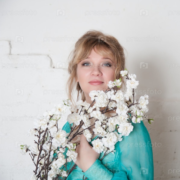 Женщина с веткой цветущего дерева