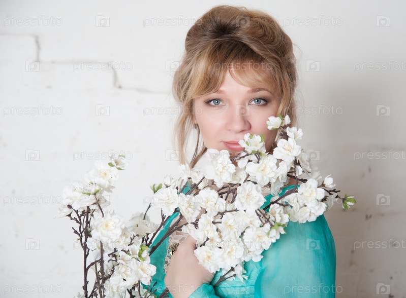 Красивая женщина с веткой цветущего дерева