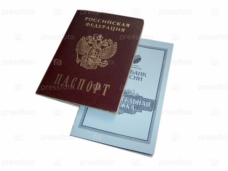 Сберегательная книжка и паспорт гражданина РФ на белом фоне