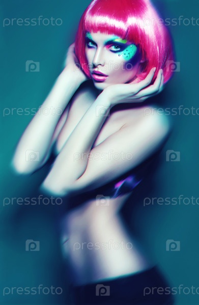 Сексуальная женщина в розовом парике