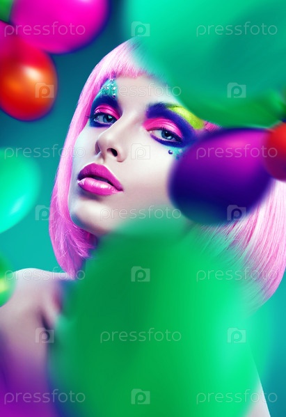 Портрет сексуальной женщины в розовом парике