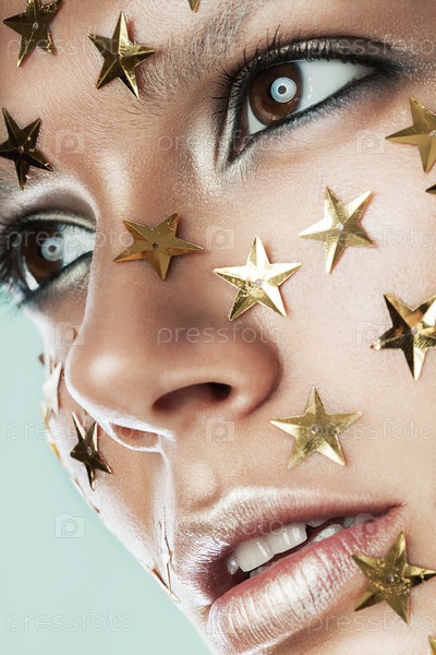 Портрет модели с золотыми звездами на лице