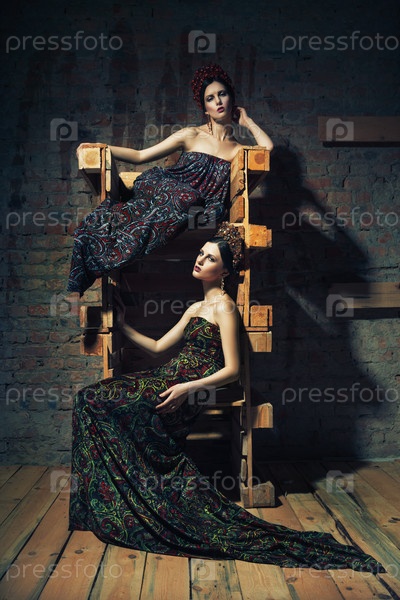 Модели в старом темном интерьере