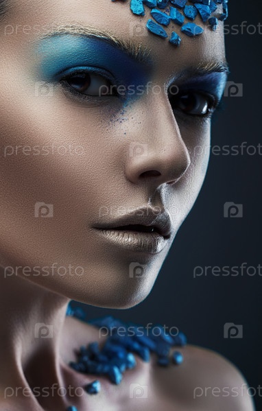 Красивая женщина с синими камнями на теле