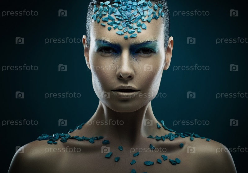 Красивая женщина с синими камнями на теле