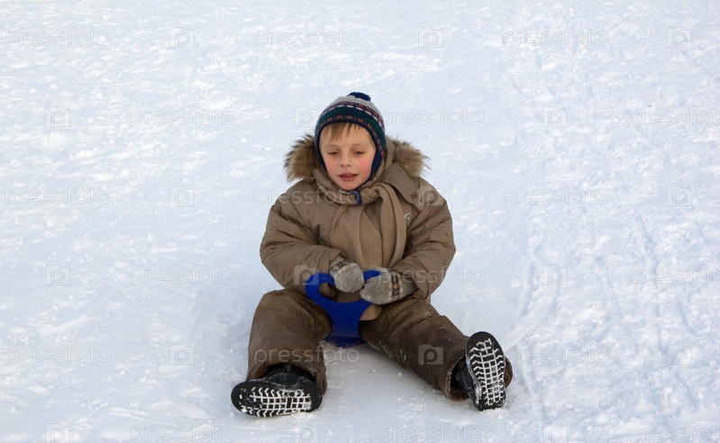 Мальчик отправляется на прогулку по ледовому склону