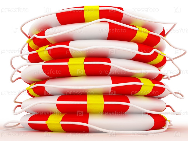 Стопка спасательных кругов на белом фоне