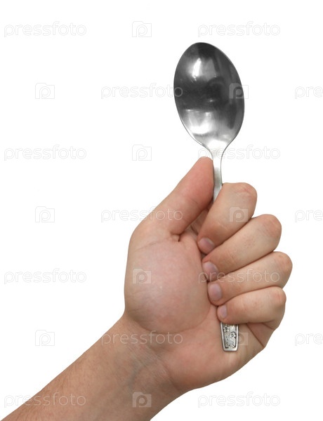 Рука с ложкой на белом фоне