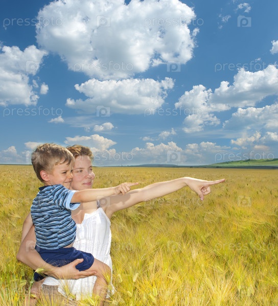 Мать с сыном на пшеничном поле