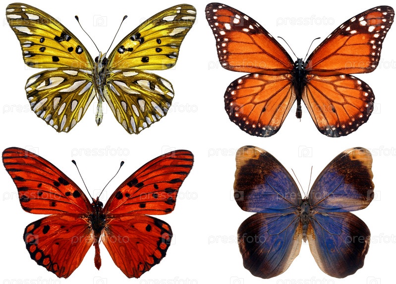 Бабочки на белом фоне