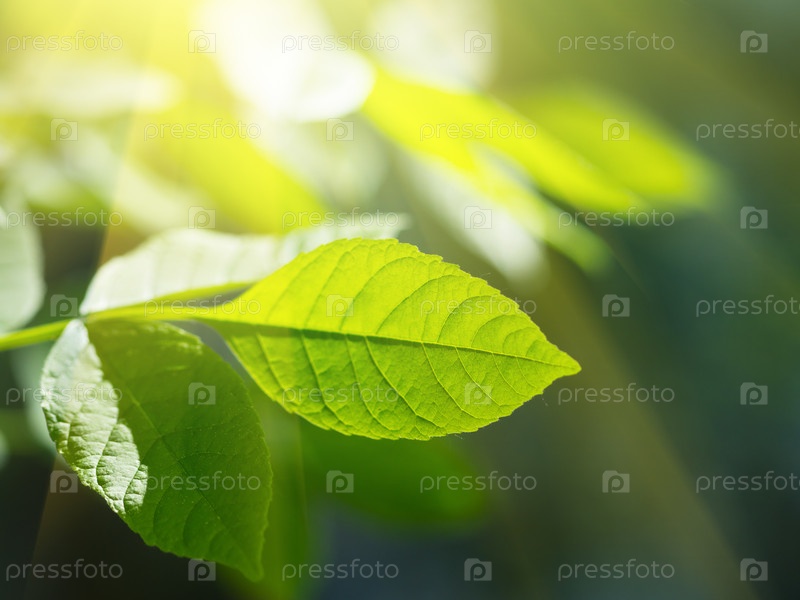 Зеленые листья в лучах солнца