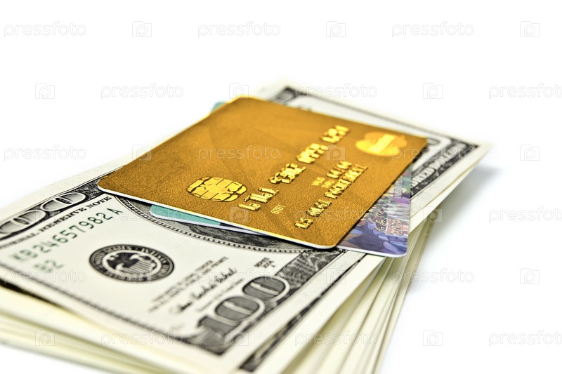 Американские доллары и кредитные карты на белом фоне