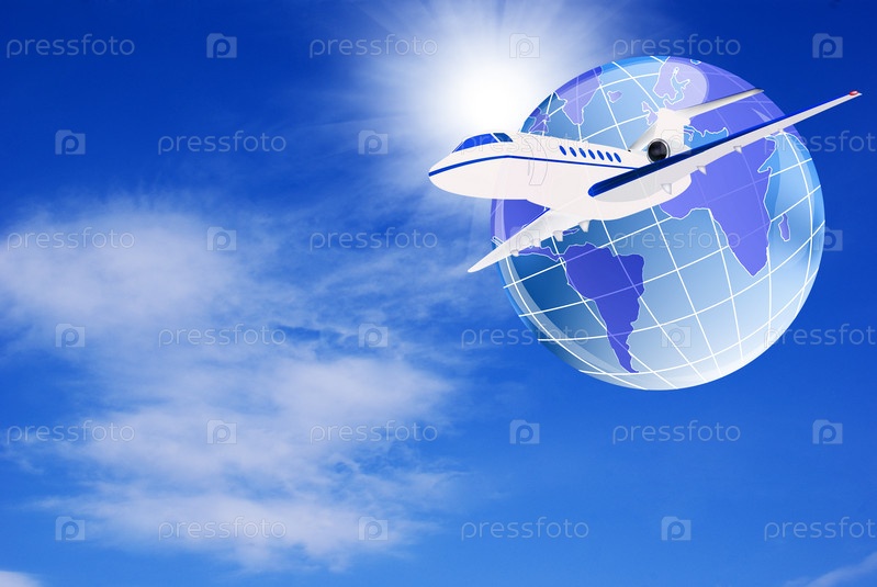 Летящий авиалайнер на фоне планеты Земля