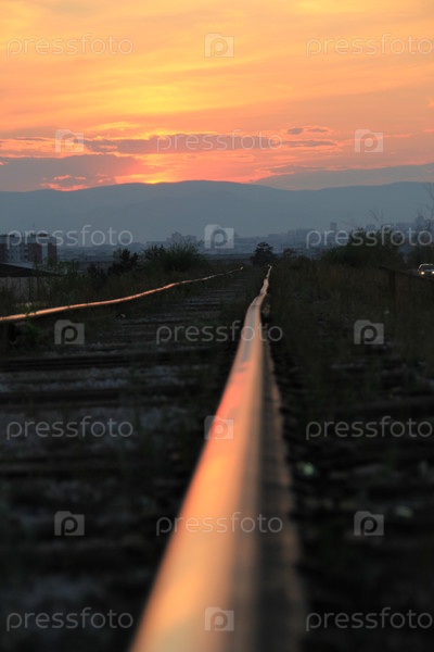 Железнодорожные рельсы, закат