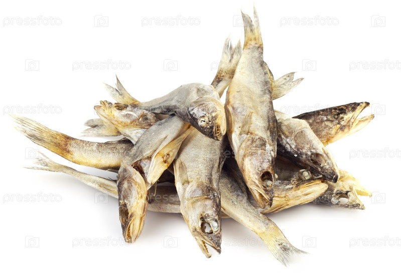 Сушеная рыба на белом фоне