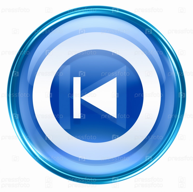 Синяя веб-иконка с символом перемотки влево на белом фоне