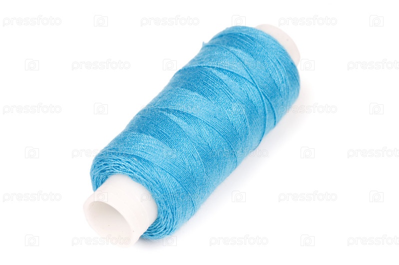 Катушка голубых ниток на белом фоне