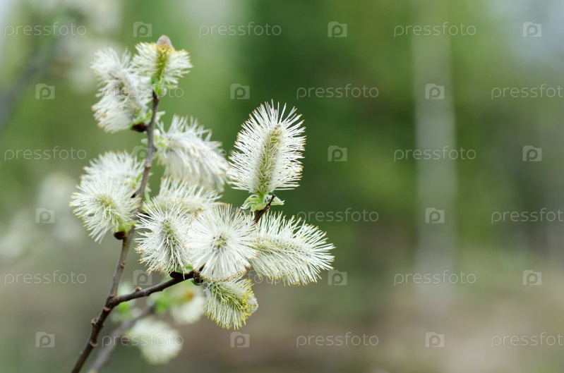 Ветка цветущей ивы или вербы, крупный план