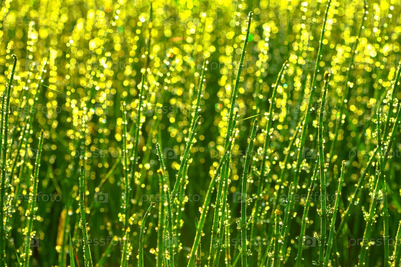 Зеленая трава с каплями росы