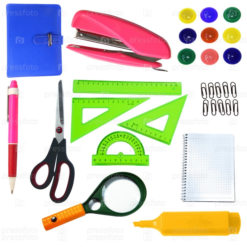 Канцелярские принадлежности на белом фоне