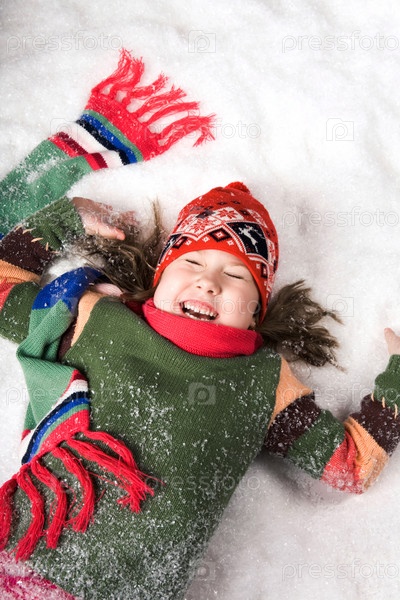 Фото игривой девочки, наслаждающейся зимним днем и смеясь