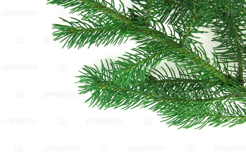 Ветка ели на белом фоне