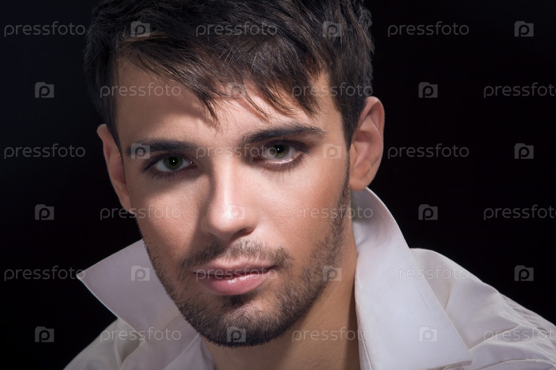 Портрет молодого человека крупным планом на черном фоне
