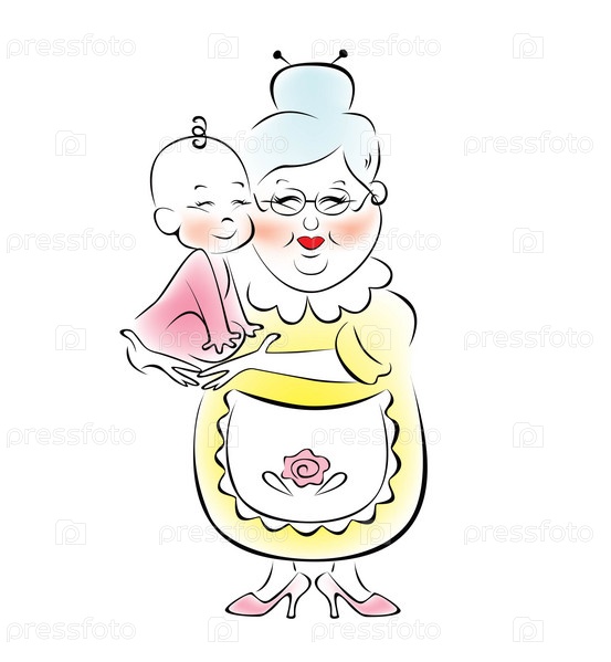 Бабушка с внуком на руках, иллюстрация на белом фоне