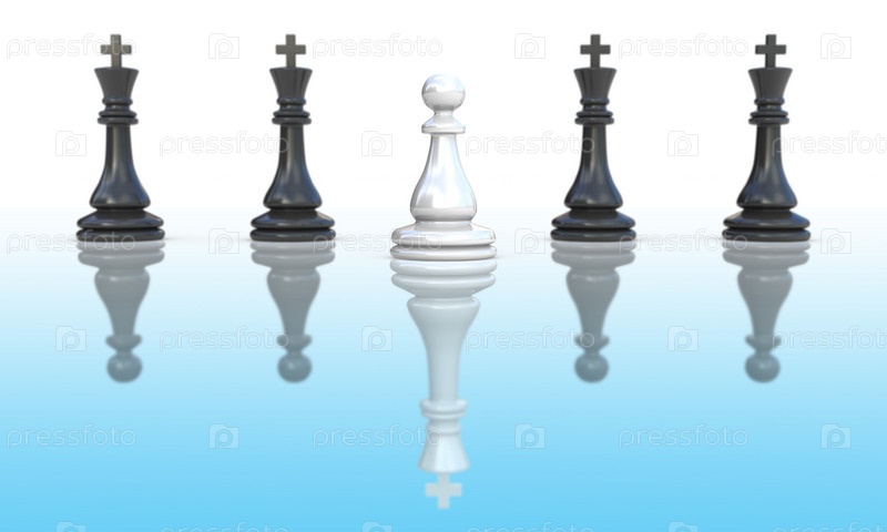 Концепция лидерства - белая шахматная фигура на фоне черных, иллюстрация