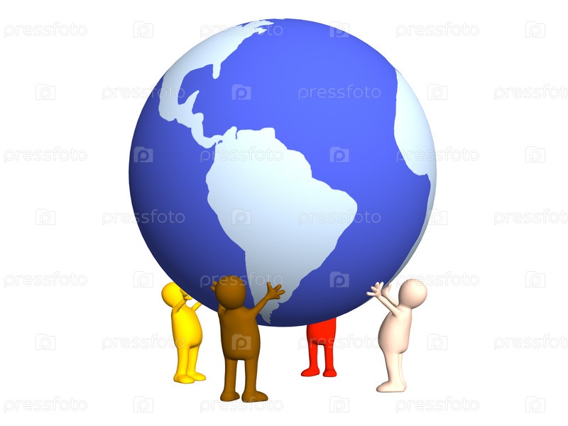 Четыре стилизованных человечка, держащие Землю в руках