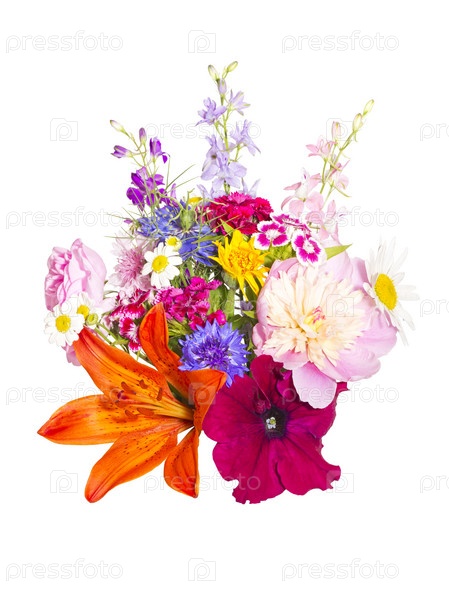 Букет из летних цветов на белом фоне