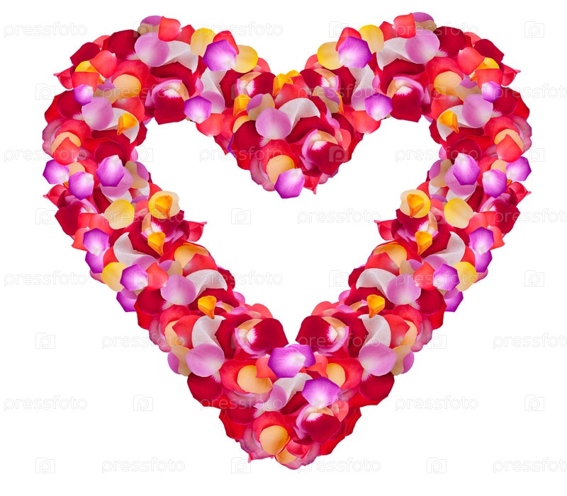 Сердце из роз на белом фоне