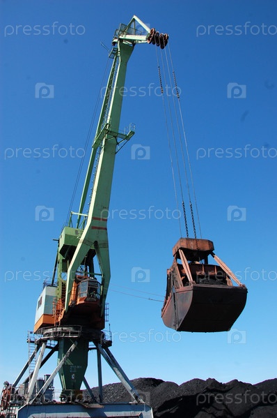 Кран грузит уголь