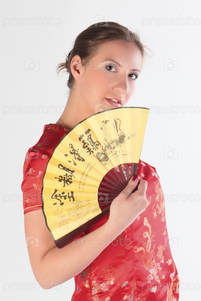 Девушка в красном платье с веером
