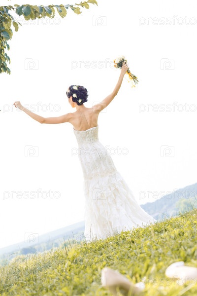 Молодая невеста гуляет по лугу