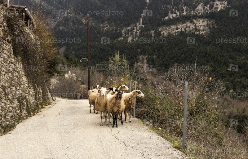 Овцы на дороге в горах