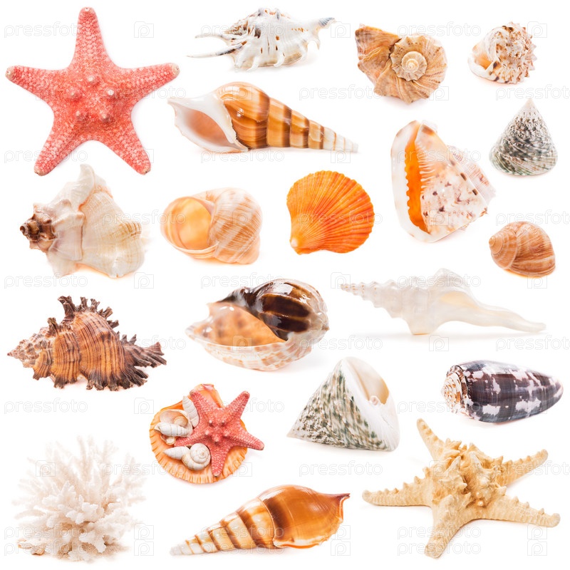 Морские раковины, изолированные на белом фоне