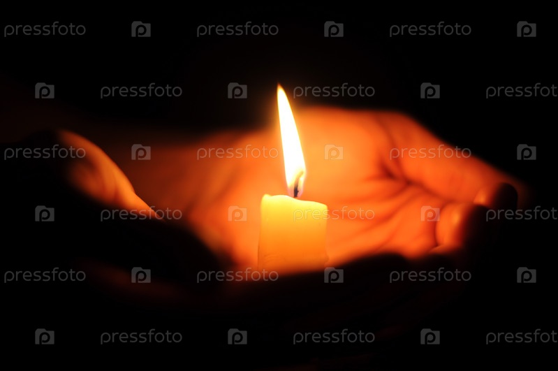 Свеча на ладонях на черном фоне